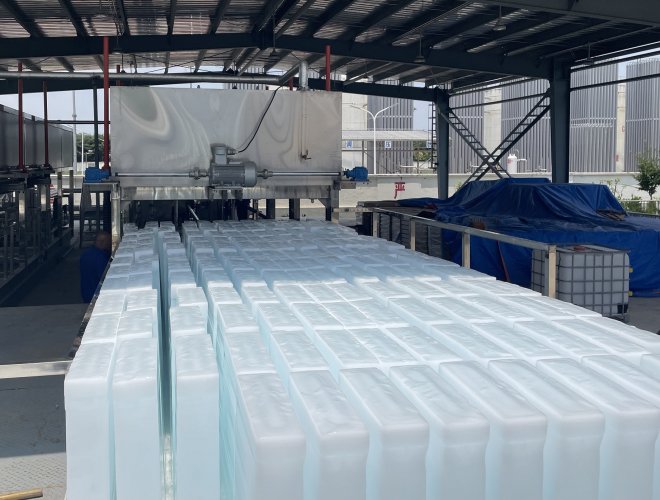 ●自動化程度高,自動上水、自動制冰、自動脫冰。脫冰后可直接推送裝車,也可將冰塊推送到輸送帶上,自動輸送到冰庫,自動碼垛。